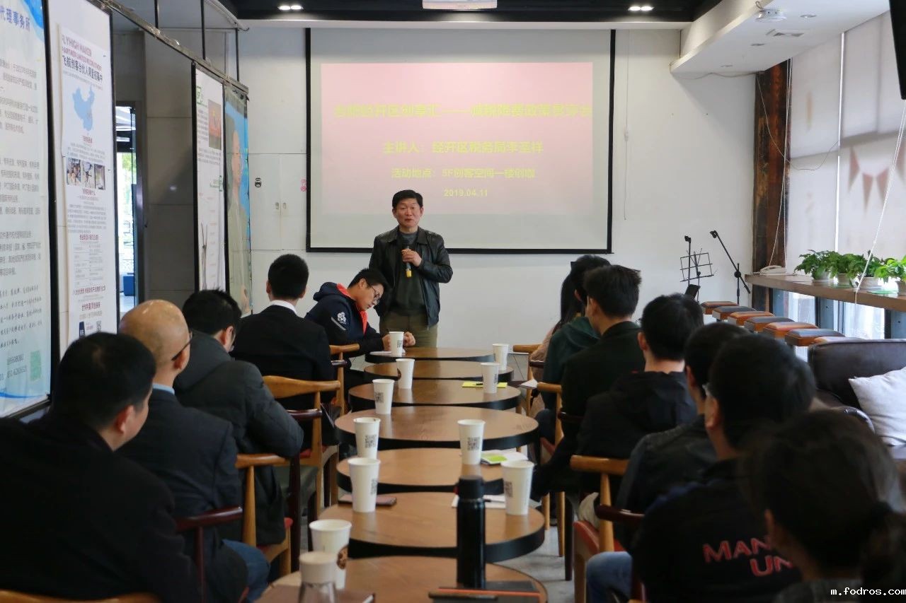 为贯彻党中央、国务院减费降税决策部署,推动减费降税政策落实落地,切实降低企业负担,区科技局联合区税务局于4月11日下午在5F创客空间举办经开区第五期“创享汇”——减费降税政策宣贯会。经开区税务局领导、园区20多家企业负责人及我司总经理陈总参加会议。