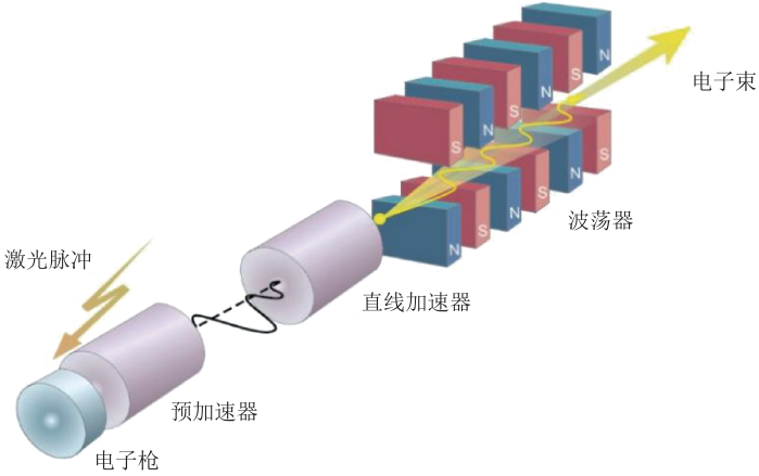 同步辐射光源正在经历从第三代到第四代的跨越。第四代同步辐射光源是基于衍射极限储存环技术,亮度将比第三代光源提高几百倍以上,相干性更好,对世界科技变革的影响难以估量,已成为当前国际竞争的热点。高亮度光源发展的另一条技术路径—自由电子激光的发展,使得人类能够在原子分子水平上动态认识世界。自由电子激光的原理是通过自由电子和光辐射的相互作用,电子将能量转送给辐射而使辐射强度增大。自由电子激光的发展将为多学科提供高分辨成像、超快过程探索、先进结构解析等尖端研究手段,必将有效推动诸多学科领域的基础和应用研究的发展(图5)。